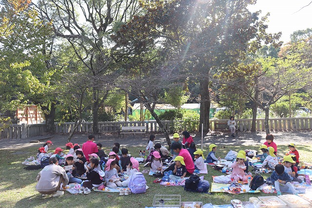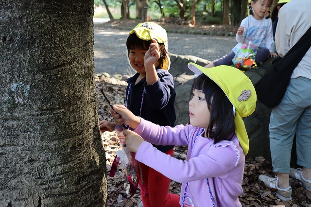 心地よい秋晴れの中、子どもたちと一緒に「秋みつけ」に出かけました。